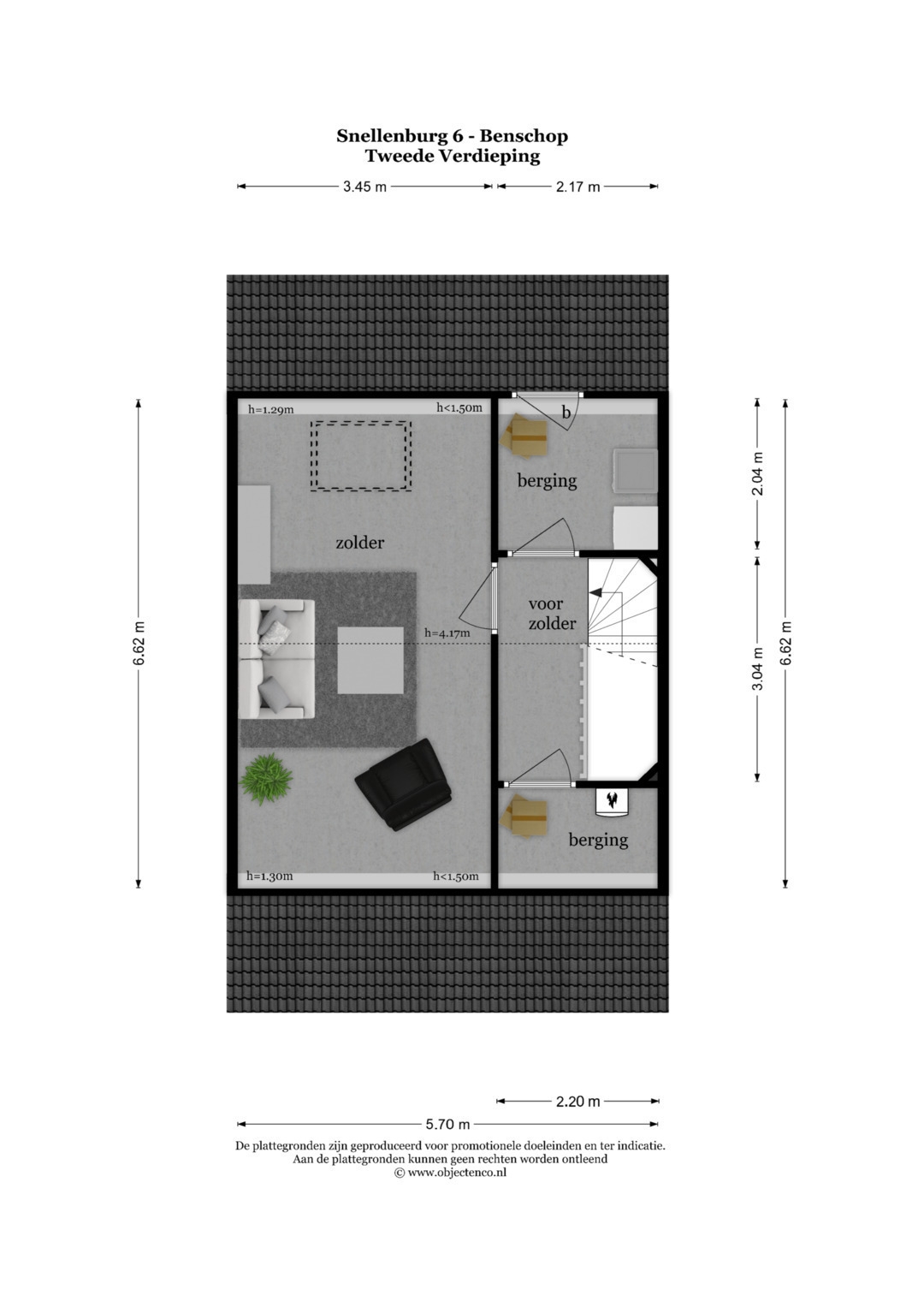 2e verdieping: hier bevinden zich de voorzolder, c.v.-/bergruimte , zolderberging, aparte waskamer en de 4e slaapkamer met groot dakraam. Deze verdieping is voorzien van laminaatvloeren in combinatie met vloerverwarming.