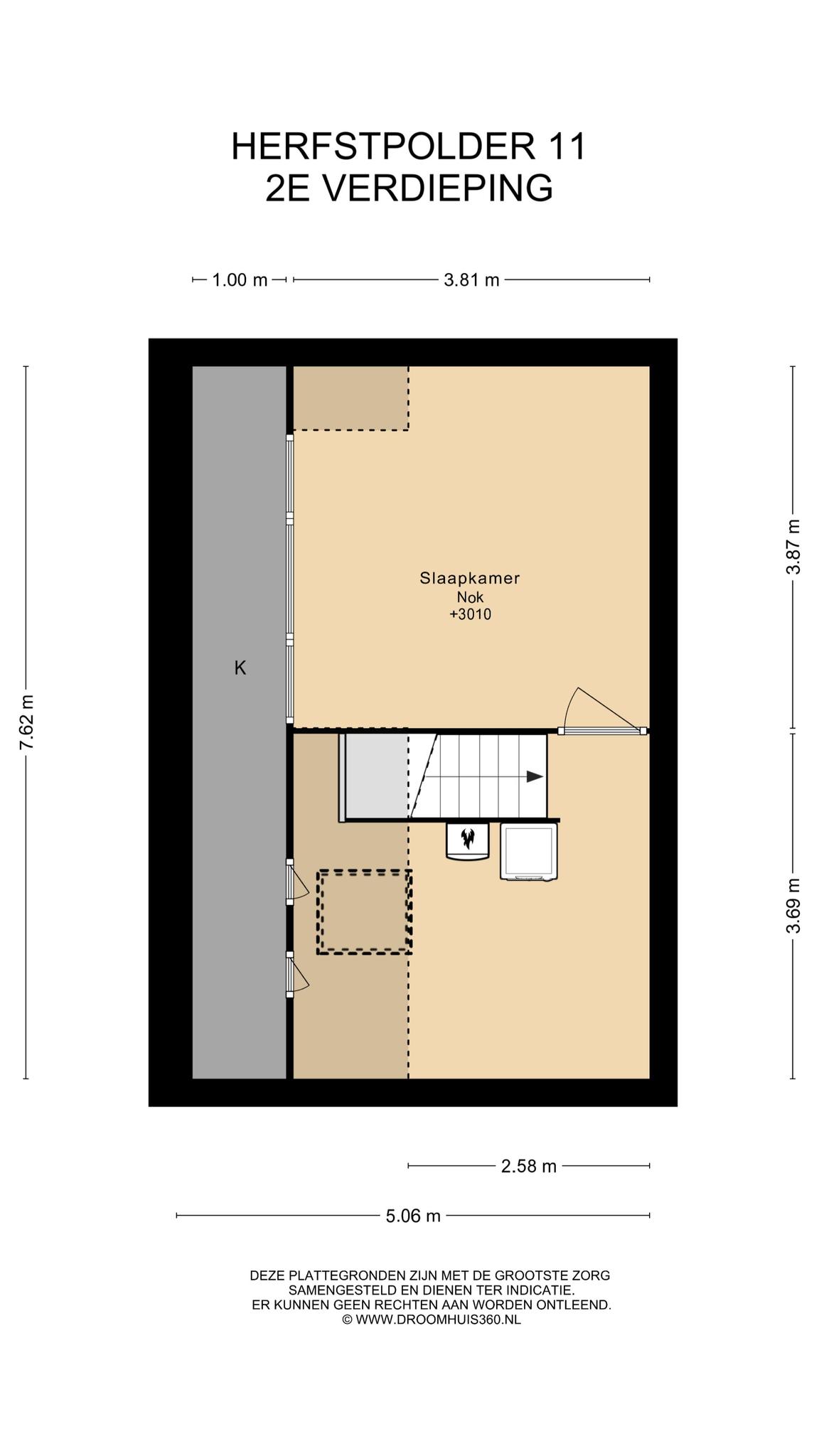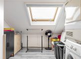 2e verdieping: overloop met was-/c.v.-ruimte alsmede diverse bergruimte. De slaapkamer is extra ruim en licht door het grote dakkapel.