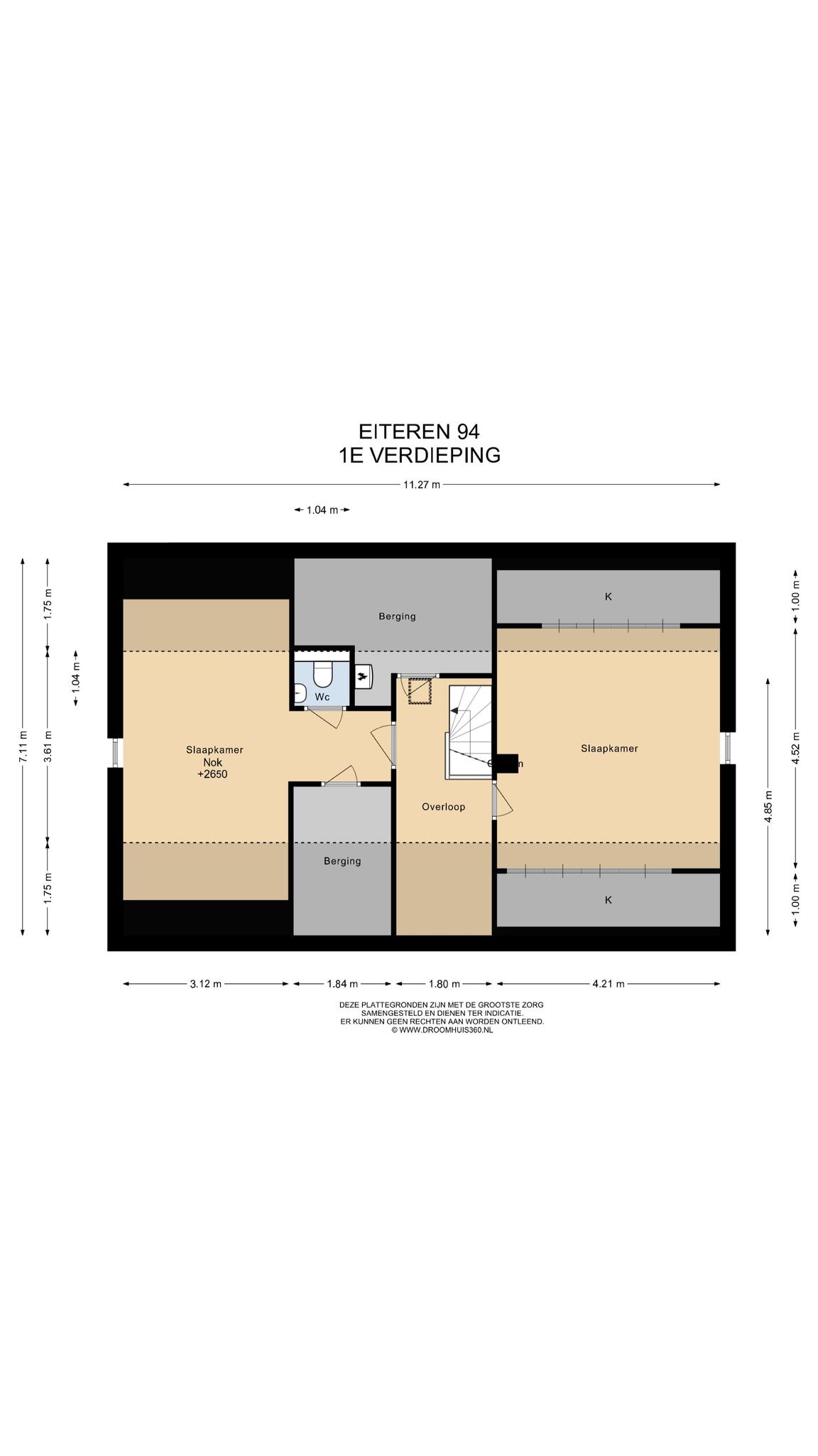 Verdieping: overloop naar 2-tal ruime slaapkamers en bergruimte. Een slaapkamer is voorzien van een eigen toilet en inpandige bergruimte.