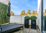 Tweede verdieping: overloop met grote inbouwkast (berging en c.v.-ruimte), drie ruim bemeten slaapkamers en een complete badkamer met hoekbad, wastafel, inloopdouche en tweede toilet. Zowel de overloop als de ouderslaapkamer hebben toegang tot het royale terras op het westen. Een ideale plek om tot laat van de zon te genieten.