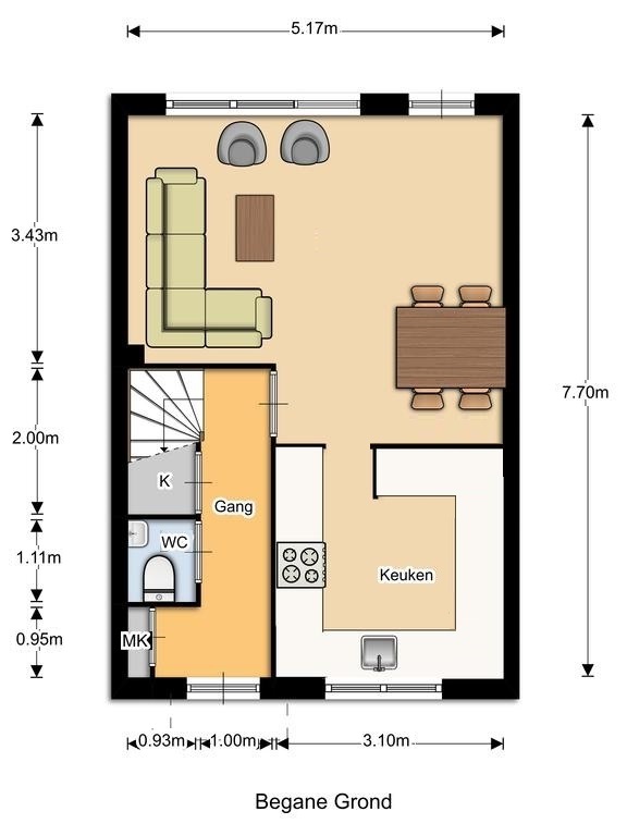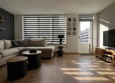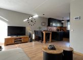 De gehele begane grondvloer is afgewerkt met een nette laminaatvloer.