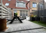 De achtertuin, gelegen op het westen, is geheel voorzien van sierbestrating (recentelijk vernieuwd), een stenen berging, een achterom en heeft volop privacy door de ligging.