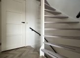 Entree met hal, meterkast, toiletruimte (modern, vrij hangend toilet en wastafeltje), ruime trapkast en trapopgang.
