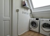 Voorzolder / overloop met de opstelplaats voor de CV-combiketel, wasmachine en wasdroger.