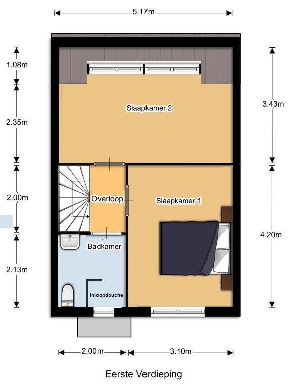 Beide slaapkamers zijn keurig afgewerkt en hebben een oppervlakte van 13 en 14 m2. De slaapkamer aan de achterzijde heeft tevens een grote dakkapel.
