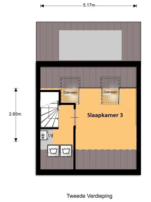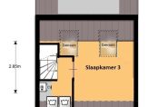 Een ruime 3e slaapkamer met extra werkhoekje en twee grote dakramen aan de achterzijde aanwezig. De oppervlakte van deze slaapkamer is 10 m2.