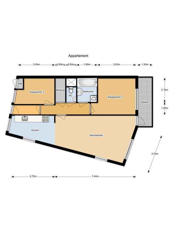 | Woonoppervlakte | 74 m2 |