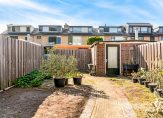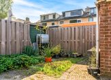 Ruime en zonnig gelegen tuin met vrijstaande stenen berging en achterom. De tuin is gelegen op het zonnige zuiden.