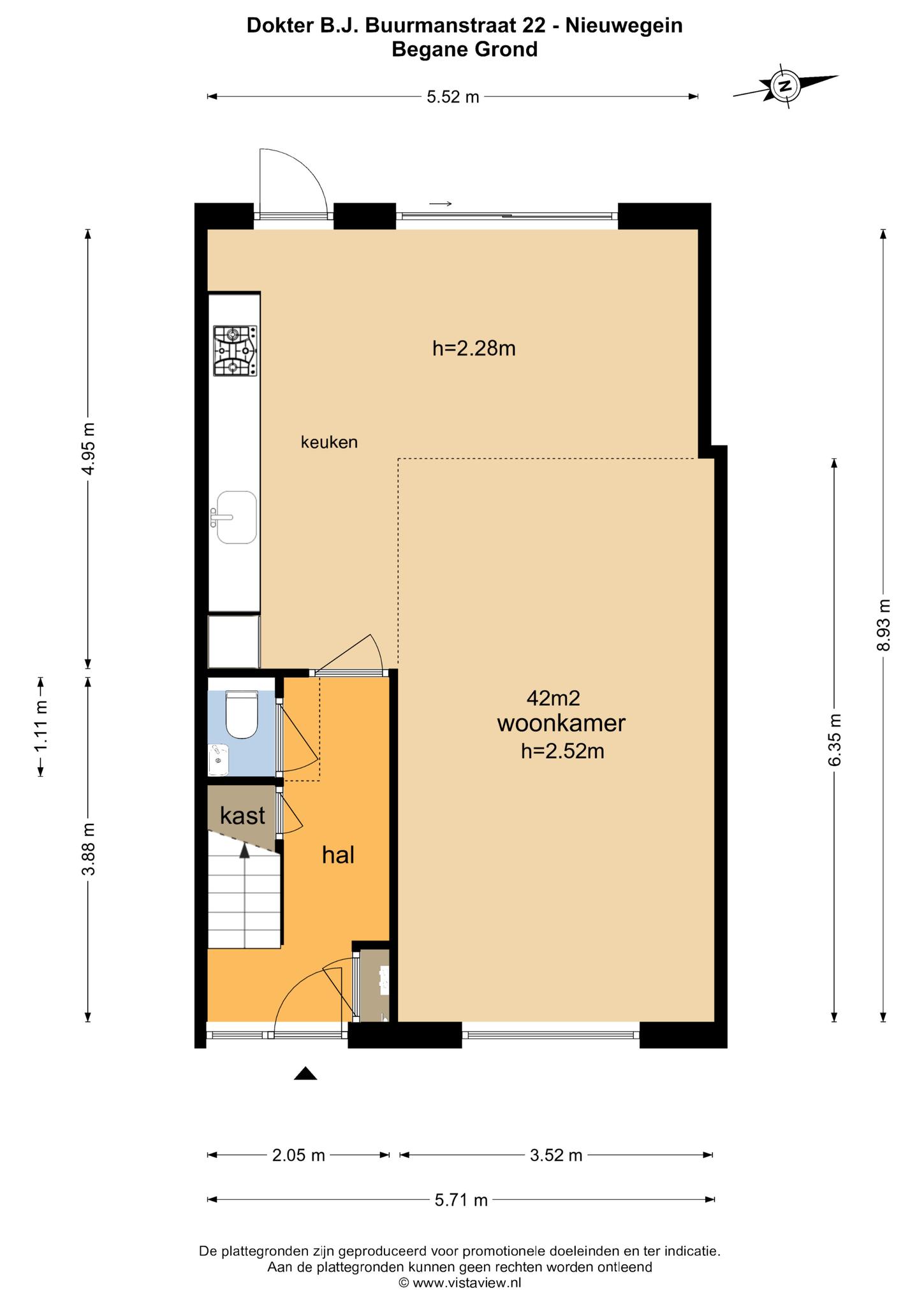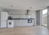 Begane grond: Entree, hal met meterkast, trapopgang, trapkast en toiletruimte. extra ruime woonkamer met een PVC vloer en nette wandafwerking. De open keuken is aan de achterzijde geplaatst en beschikt over inbouwapparatuur.