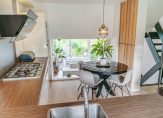 Enkele treden hoger ligt de moderne open inbouwkeuken aan de voorzijde. De keuken is uitgerust met diverse inbouwapparatuur. Naast de keuken heeft u ook een praktische bijkeuken. Tevens treft u hier een gezellig balkon.