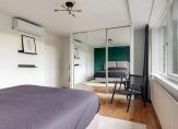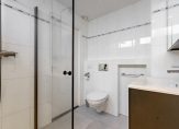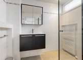 Op deze woonlaag bevinden zich twee fijne slaapkamers aan de achterzijde. Via een tussenbordes en enkele traptreden kom je op het bovenste niveau, waar zich de ruime en keurige badkamer en de master bedroom aan de voorzijde bevinden. De badkamer is neutraal van opzet en voorzien van een inloopdouche, vast wastafel met meubel en toilet.