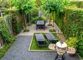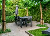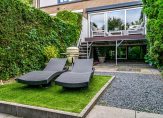 – Tuin aan het water, met verhoogd terras en trap naar beneden