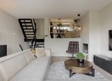 Een paar traptreden omhoog vanuit de hal brengen je naar de woonkamer aan de achterzijde van de woning. De woonkamer is licht van opzet en heeft de beschikking over een sfeerhaard. Aangrenzend aan de woonkamer komt u op het verhoogde terras op het westen. Via een trap is de goed aangelegde tuin bereikbaar, direct grenzend aan het water.