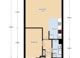 Appartement: Entree, hal, toegang tot woonkamer. De ruime woonkamer en open keuken zijn onderdeel van het woonoppervlakte van maar liefst 56m2. De open keuken is voorzien een keukenblok welke van alle gemakken is voorzien. Vanuit de woonkamer is er toegang tot het kleine balkon. Door het grote raam is de woonkamer voorzien van veel lichtinval. De slaapkamer is gelegen aan galerij-zijde van het appartement en ca. 12 m² groot. De badkamer is netjes uitgevoerd en voorzien van een toilet, wastafel en een douche.