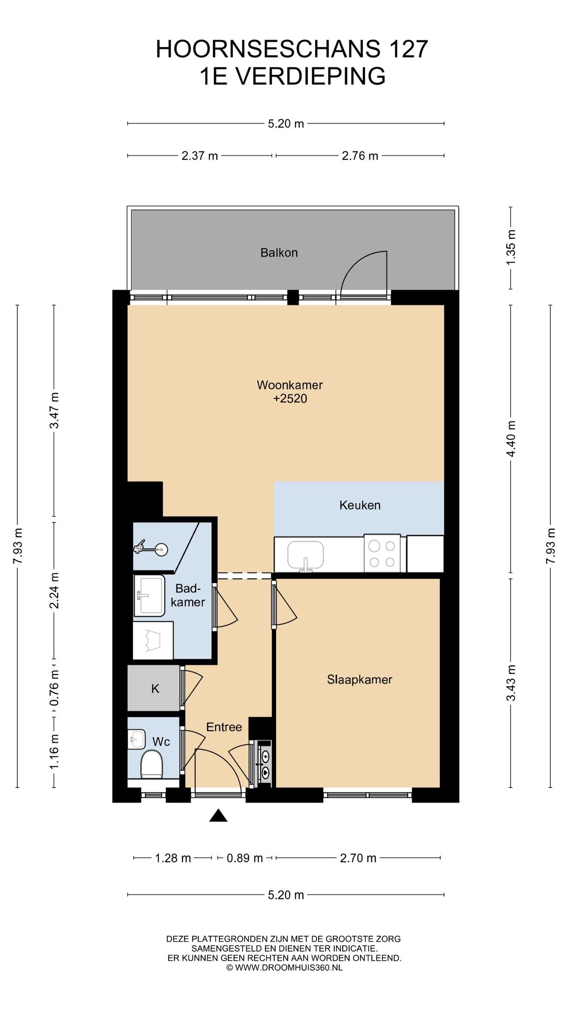 Het appartement is te bereiken vanaf de galerij op de 1e verdieping. De hal met meterkast, toilet, garderobe geeft doorgang naar de badkamer, slaapkamer en woonkamer met open keuken. De woonkamer is licht en gezellig ingericht. Er licht een nette laminaatvloer en er is een fraaie spiegelwand afwerking geplaatst naast de deur naar het balkon. De spiegels geven de appartement een ruimtelijk gevoel.