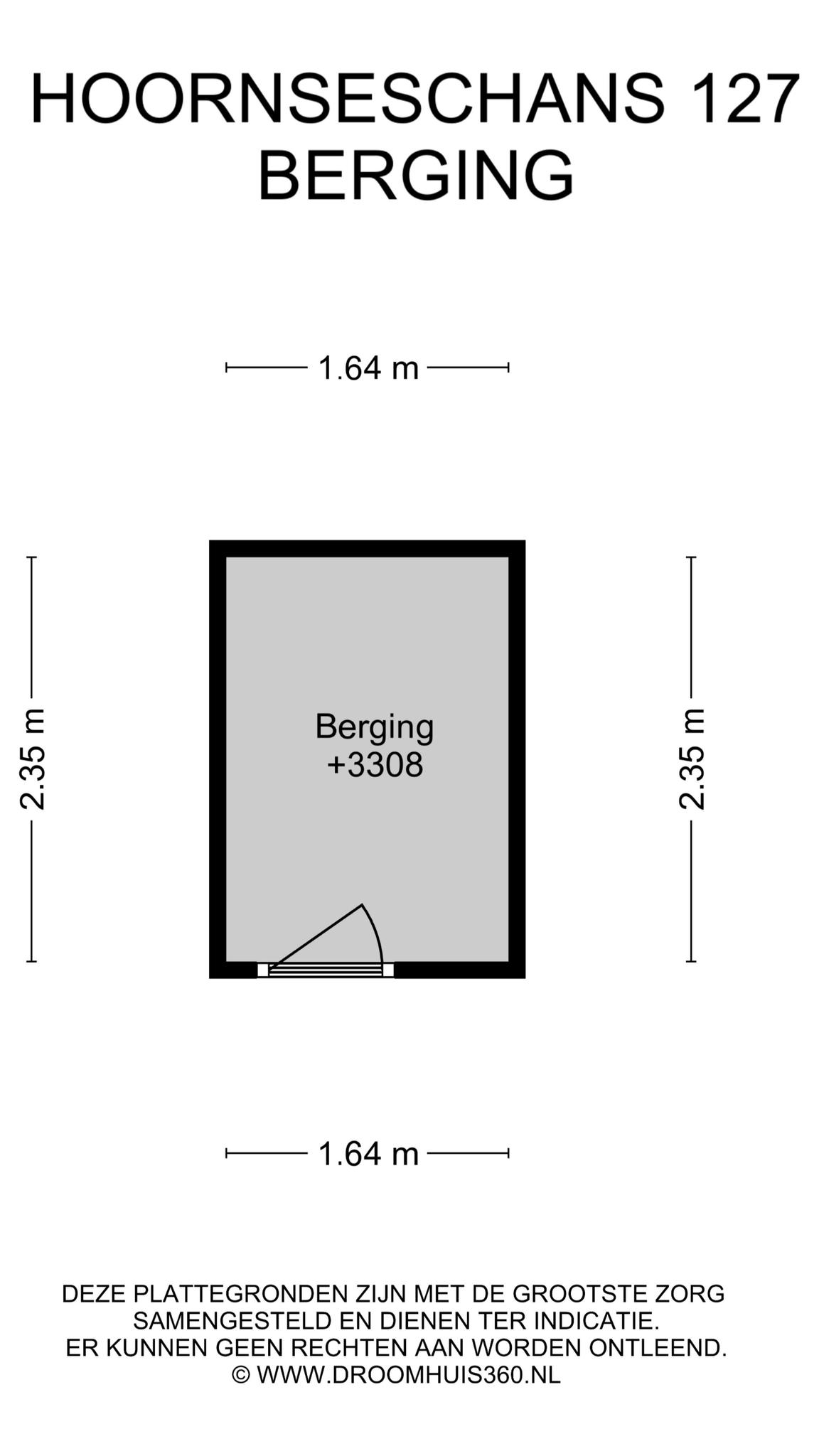 Op de begane grond is er nog een berging van circa 4 m2. Er is elektra en de berging is zeer hoog waardoor het mogelijk is extra bergruimte bovenin te creëren.