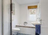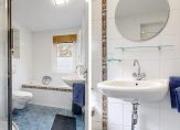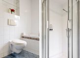 1e verdieping: overloop met toegang naar de 3 goed bemeten slaapkamers alsmede de complete badkamer met wastafel, ligbad, douchecabine en 2e toilet.