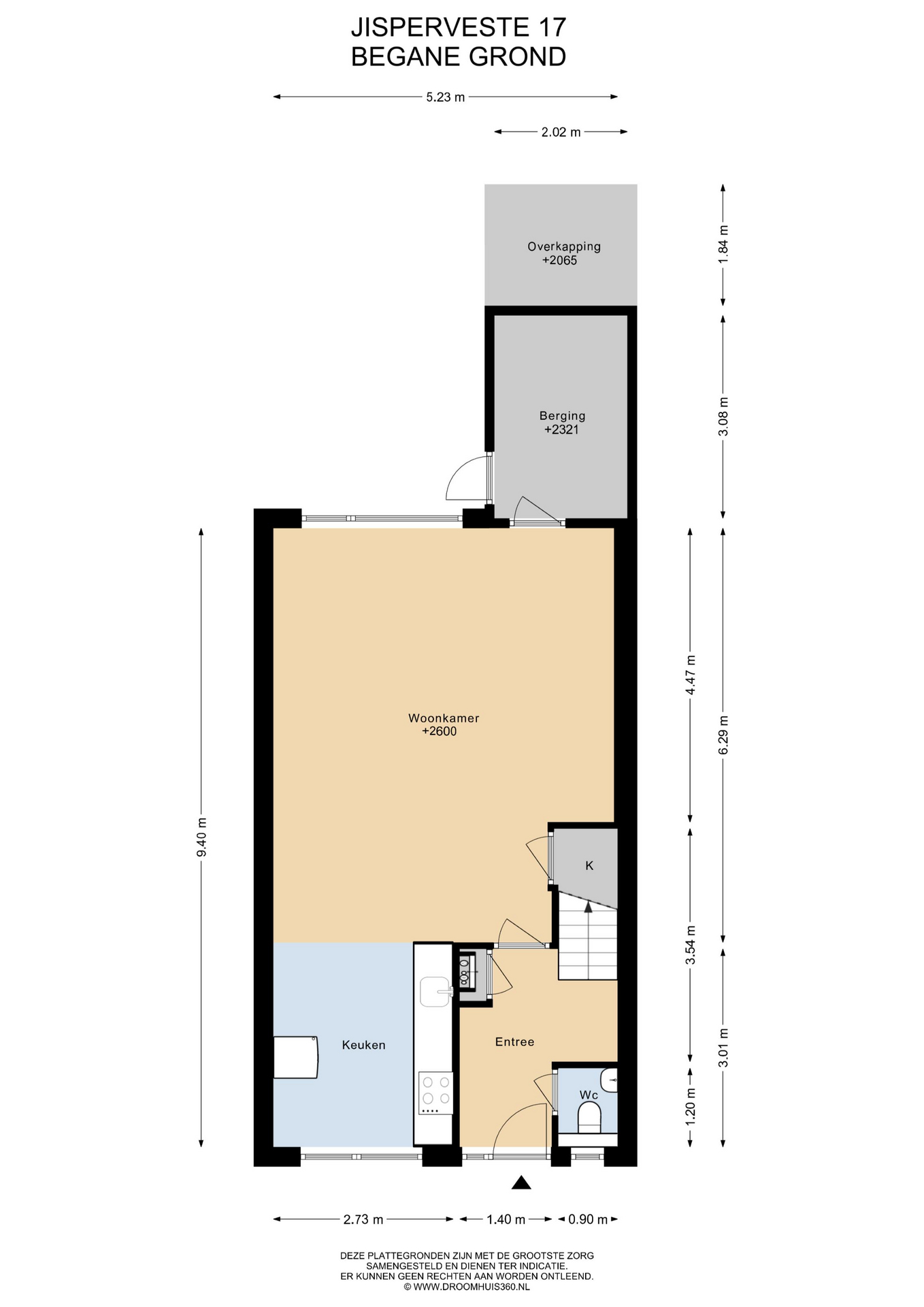Begane grond: entree/hal met meterkast en toilet, ruime tuingerichte woonkamer met trapkast en toegang tot de berging. De half open keuken is eveneens ruim en bevindt zich aan de voorzijde van de woning, keukeninrichting voorzien van inductiekookplaat, oven en afzuigkap.