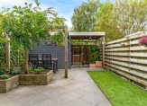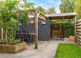 De brede achtertuin is gelegen op het zonnige westen en beschikt over een vrijstaande schuur. De achtertuin heeft een achterom. Naast veel zon beschikt de tuin over veel privacy.