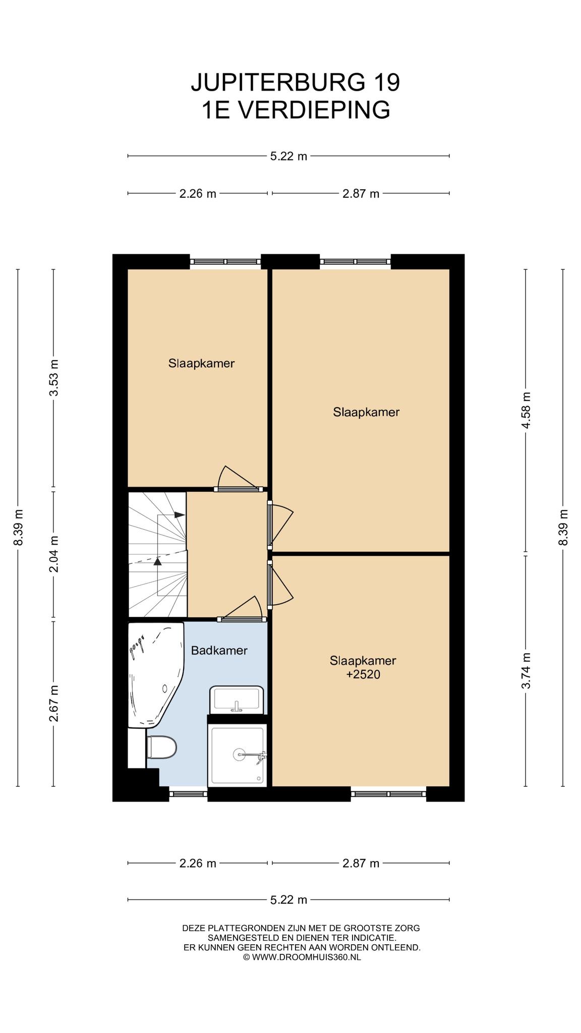 Goede overloop met toegang tot de moderne badkamer en de 3-tal ruime slaapkamers. De badkamer beschikt over een 2e toilet, ligbad, ruime inloopdouche, raam en vaste wastafel. Op de verdieping ligt een keurige laminaat vloer.