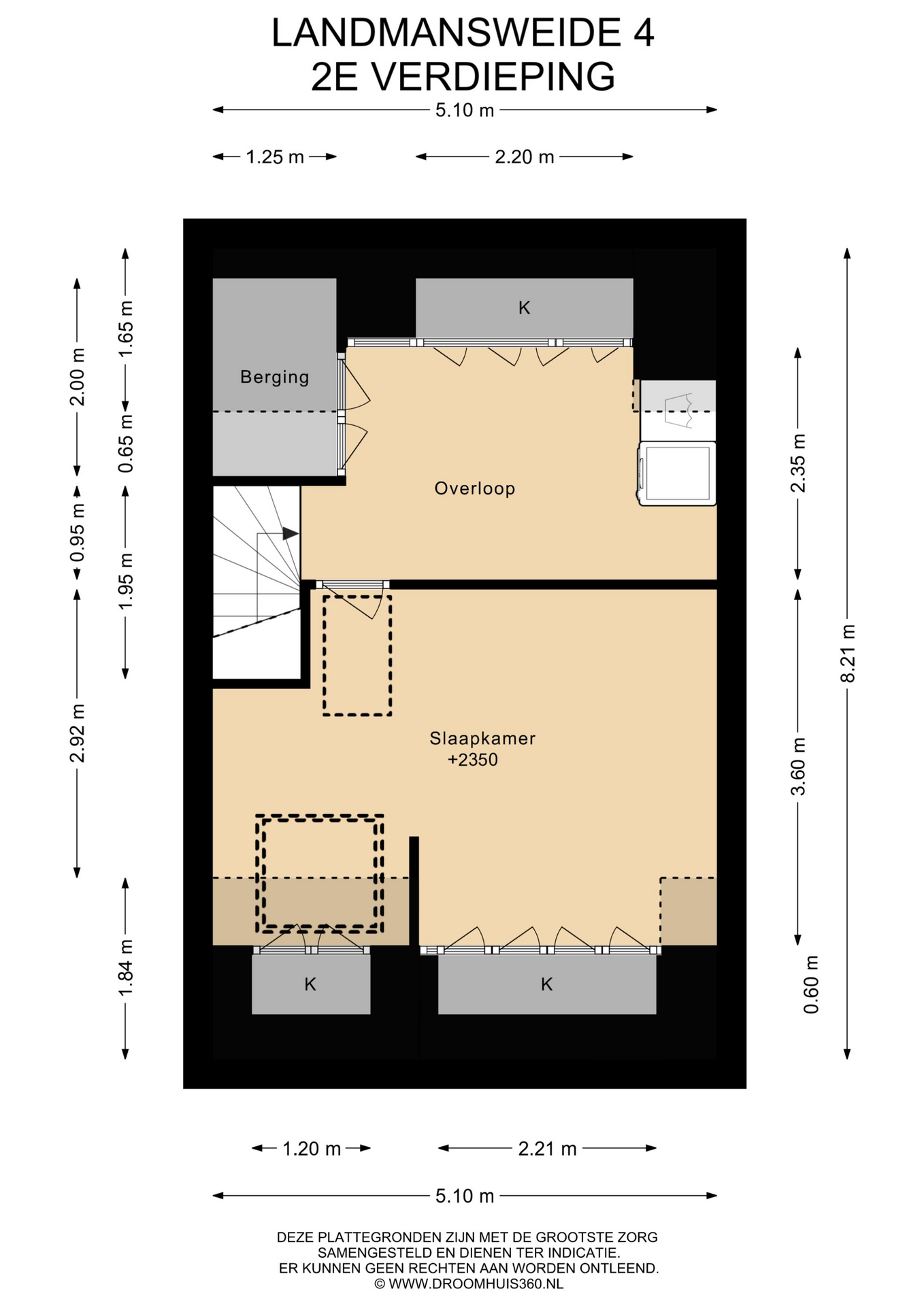2e verdieping: brede voorzolder met w.m.-aansluiting en grote zolderkamer. De dakkapellen aan voor- en achterzijde in combinatie met de velux ramen, geven veel extra licht en ruimte aan deze verdieping.
