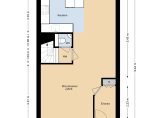 Begane grond: entree/hal met meterkast, ruime en gezellige woonkamer met eethoek aan de achterzijde. Deze sluit aan op de half open keuken waardoor het gevoel van een eetkeuken is ontstaan. De moderne keukeninrichting heeft een hoekopstelling met een extra blok. De inbouwapparatuur bestaat uit een inductiekookplaat, koelkast, vriezer, magnetron/oven, afzuigkap en vaatwasser. Een 2e hal met modern toilet en trapopgang.