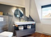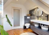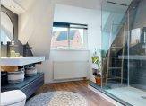Op de eerste verdieping vind je een zeer royale slaapkamer welke is voorzien van 2 dakkapellen en een walk-in-closet. De moderne badkamer is voorzien van een toilet, een dubbele wastafel en een inloopdouche. Op de overloop vindt je een praktische wasruimte.
