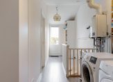 De tweede verdieping is in 2023 uitgebouwd en voorzien van nieuwe houten kozijnen. De ruime overloop biedt toegang tot een royale slaapkamer en het dakterras. Daarnaast is er volop bergruimte aanwezig, evenals voldoende plaats voor bijvoorbeeld een werkplek en wasvoorzieningen.