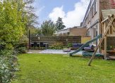 Aan de zijkant van de woning is een tweede berging geplaatst, uitgevoerd in onderhoudsvriendelijk kunststof (2022). Naast het royale terras aan de achterzijde is er een tweede, beschut terras gerealiseerd in de hoek van de tuin, dat in 2025 opnieuw is bestraat.