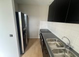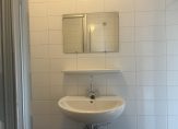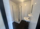 en douchecabine. Aan het einde van de hal is de toegang tot de lichte woonkamer met deur naar het terras, half open keuken en bijkeuken. Keurige vloerafwerking met laminaat.