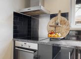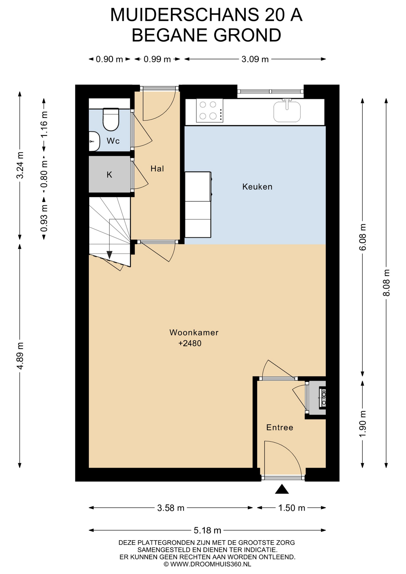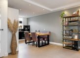 Indeling: entree/hal met meterkast, gezellige woonkamer met (kleinere) trapkast en aansluitend de keuken welke is voorzien van inbouwapparatuur: keramische kookplaat, afzuigkap, vaatwasser, koelkast, oven en combi-oven. Een tweede hal met trapopgang, praktische inbouwkast en toilet. Hier bevindt zich tevens de toegang tot de achtertuin. Begane grond voorzien van ‘strakke’ vloerafwerking met vloerverwarming.