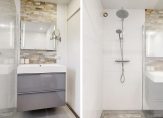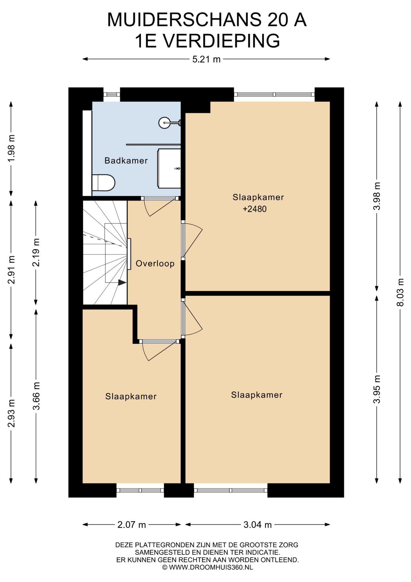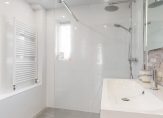 1e verdieping: overloop naar 3 ruim bemeten slaapkamers en de moderne badkamer met inloopdouche, wastafelmeubel, 2e toilet en designradiator. De overloop en slaapkamers zijn afgewerkt met laminaatvloeren.