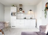 In kleinschalig en modern appartementencomplex gelegen 2-kamer hoekappartement met verrassend ruime indeling en groot dakterras!