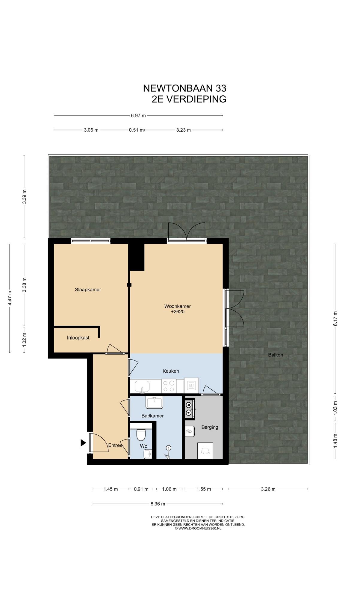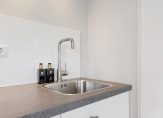 Indeling woning: een ruime hal hal met toegang tot separaat en modern toilet, moderne badkamer met wastafelmeubel, inloopdouche en design radiator. De slaapkamer is eveneens zeer ruim bemeten en is voorzien van een inloopkast. De woonkamer is eveneens zeer ruim en praktisch. De raampartijen en het hoge plafond versterken het ruimtelijk gevoel. Alle ramen zijn voorzien van praktische duette raambekleding (verduisterend en zonwerend). Aansluitend bevindt zich de half open keuken welke is voorzien van een moderne keukeninrichting in hoekopstelling voorzien van inductie kookplaat, magnetron/oven, afzuigkap, koelkast en vaatwasser alsmede praktische bijkeuken met w.m.-aansluiting en c.v.-installatie. Het riante dakterras van 67m2! is op het Zuiden en Westen gesitueerd en bereikbaar middels niet, maar 2 keer, openslaande deuren vanuit de woonkamer.