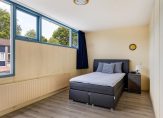 De ruime vierde slaapkamer (ca. 15 m²) bevindt zich aan de voorzijde van de woning en is voorzien van wastafel en een dakraam. Verder beschikt de kamer over veel bergruimte achter de knieschotten en vind je hier de unit voor de mechanische ventilatie.
