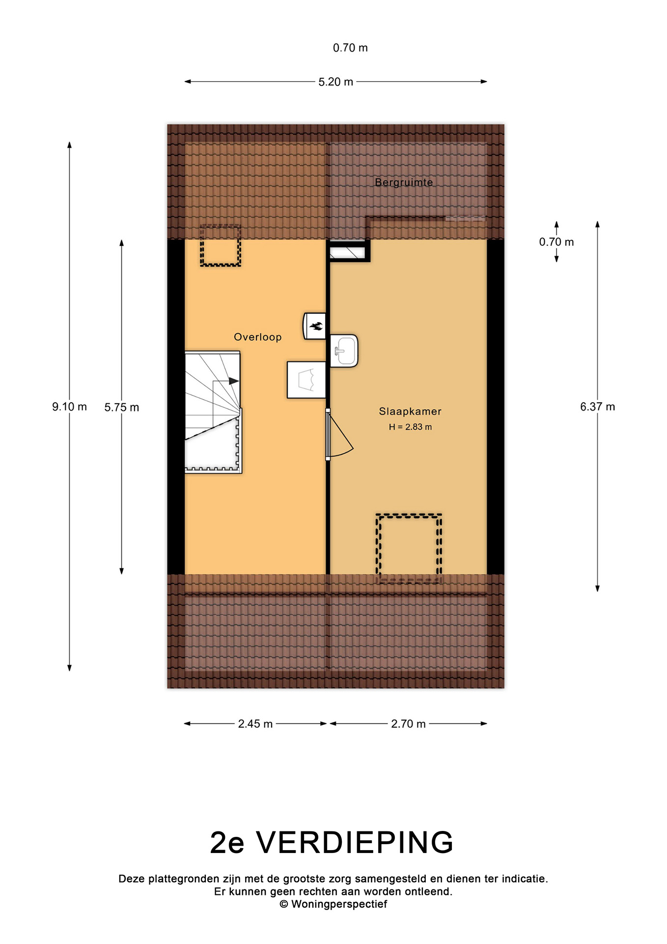 Via de trap bereikt u de overloop van de 2e verdieping met een dakraam aan de achterzijde.