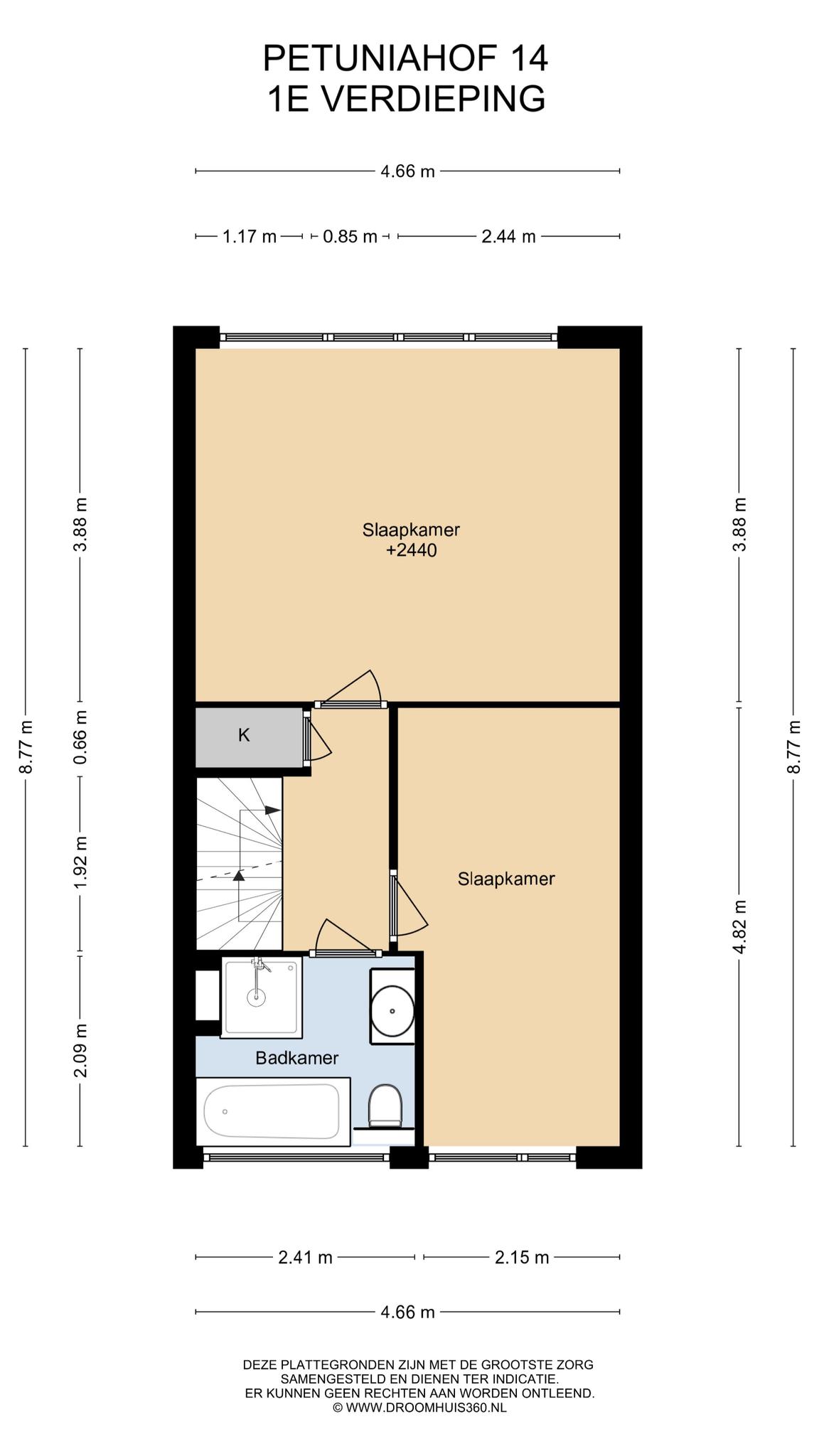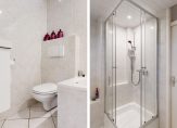 1e verdieping: overloop met inbouwkast, 2-tal ruim bemeten slaapkamers. De grote slaapkamer aan de achterkantzijde kan tevens opgesplitst worden in twee slaapkamers. Complete badkamer met wastafel in ombouw, ligbad, douchecabine en 2e toilet.