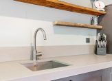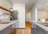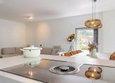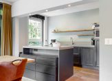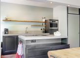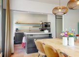 De aangrenzende keuken is voorzien van een moderne keukeninrichting met kookeiland inclusief inductiekookplaat en Bora afzuigsysteem. Verder bestaat de inbouwapparatuur uit een koelkast, vriezer, vaatwasser en oven/magnetron. Grote slaapkamer met inbouwkast en een grote, modern uitgevoerde badkamer welke is uitgevoerd met ligbad, inloopdouche en dubbele wastafel in meubel.