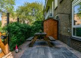 Na binnenkomst in de woning is er een ruime hal met meterkast en modern toilet, inbouwkast met w.m. aansluiting alsmede plaats voor de droger. Vanuit de hal is de woonkamer bereikbaar met toegang tot achtergelegen tuin. Het grote zijraam zorgt voor extra lichtinval.