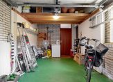 Voordeur met entree, hal, garderobe, meterkast, toiletruimte en trapopgang. Vanuit de hal bereik je de woonkamer, keuken en bijkeuken met wasmachine-/wasdrogeraansluiting en wasbak. Via de bijkeuken is de garage van 17 m² bereikbaar. De garage is voorzien van een elektrische garagedeur, verwarming, elektra en een tussenlaag voor extra opslag.