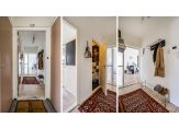 Net voor de ingang van het appartement bevindt zich de meterkast en een vaste kast.