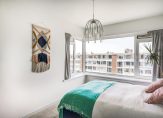De slaapkamer biedt ruimte voor een tweepersoonsbed en een kast. Door de hoekligging geniet het appartement van een extra raampartij in de zijgevel. Dit is terug te zien bij de slaapkamers, welke zorgt voor een fijne hoeveelheid lichtinval.